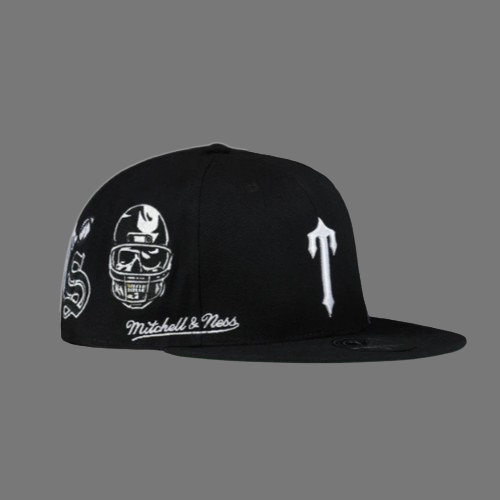 - TRAPSTAR X NFL MITCHELL & NESS T embroidered on the Front & TRAPSTAR SCRIPT X NFL Logo printed on the Side Panel.