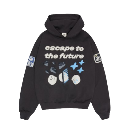 BROKEN PLANET MARKET 'ESCAPE TO THE FUTURE' HOODIE (MIDNIGHT BLACK)
