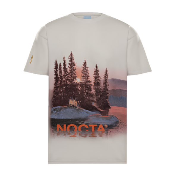 - NIKE NOCTA Toronto Nature Silkscreen Logo printed on the midsection on the Front of the Tee. Large NOCTA Text printed on the Bottom of the Tee. NOCTA SILKSCREEN G-TEX Clouded Graphic.